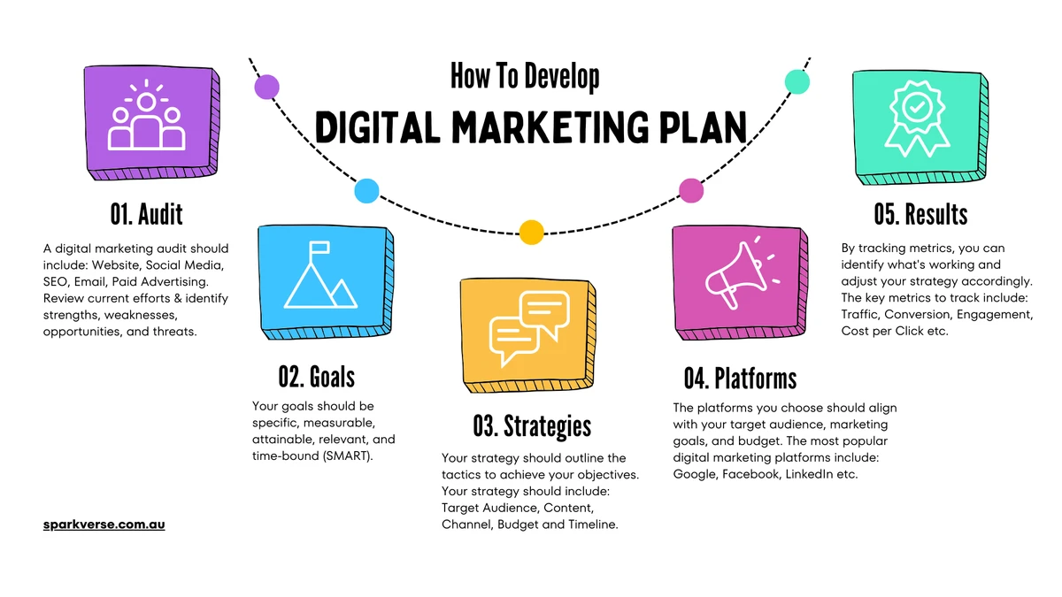 Before you can develop a digital marketing plan, you need to conduct a digital marketing audit. This involves reviewing your current digital marketing efforts to identify strengths, weaknesses, opportunities, and threats. A digital marketing audit should include: